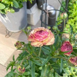 ラナンキュラスラックス ウラノス 大人渋いカラーが素敵。 今季は屋根下に置いてあるので陽当たりがあまりよくないみたいで蕾が少なめです。