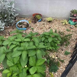 小さな地植えスペース。 ミント、ローズマリー、タイム、 ワイルドストロベリー、 ぽいぽいセダムと葉挿し… ミント、育ちすぎー∑(O_O;) ランナーもいっぱい出てるし、 葉っぱ🌿大きいし。 ミントテロや(((;꒪ꈊ꒪;)))