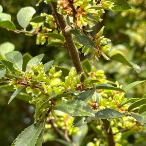 庭のアキニレ🌳 春先に一枝ずつまぁるく剪定したのにもうボサボサ💦 葉っぱから実?のようなものが生えてます。いつもこれは何かな、と思うけど正体は不明😅 葉っぱの白いステッチの縁取りがカッコイイ🌿😄