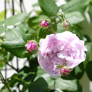 今朝のバラ🌹 シドニーです✨ 明るいグリーンの葉に小さめだけどクシュクシュのオールドローズらしい可愛い花が咲いています♪