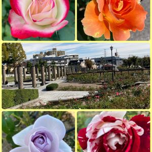 ①②伊丹の荒牧バラ公園で バラの香りに癒されて来ました ③🏷️棒の日に長く伸びた三角柱と 七宝樹ガガさま ④ガガさま咲きました ⑤ワンワン祭りにありし日の アリスを 真ん中は我が家にやって来て間もない幼いアリス ブチャイクだった😅
