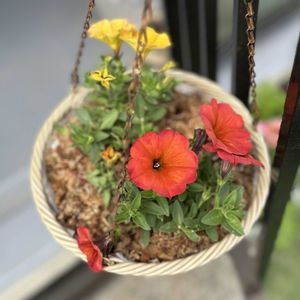①6月にワイヤーかごに寄せ植えした挿し芽っ子達が咲き始めました ②寄せ植えの中のレッドメープル レッドとメープルがせめぎ合ってマーブル模様に😆 ・ビューティカルモニター苗 サンセットオレンジ レッドメープル ・スーパーチュニアビスタシルバーベリー 親株は少しお疲れ😥な感じもしますが、植えたてのこちらは柔らかで生き生きとした様子 この春の挿し芽は大勝利でした 挿し芽っ子が沢山育ったので、贅沢に植え付けたあと2つの寄せ植えもそろそろ咲きそうです😊