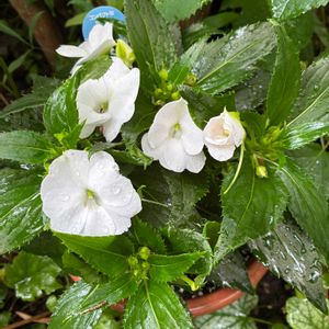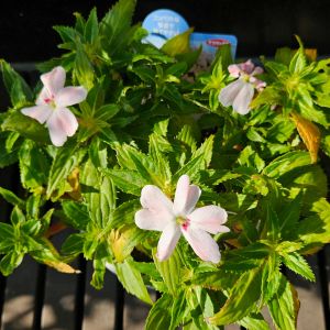 サンパティオモニター報告𓂃𓂂ꕤ*.゚ ホワイトも咲きました‼️ 暑い季節でも爽やかな純白です! 白い花が大好きで、夏は毎年インパチェンスの白をお迎していたけど、今年はサンパティオで決まりかな? グリーンとの相性もいいですね。 ブラッシュピンクとパープルも引き続きよく咲いてます。 以前日焼けしたので、午前中の早い時間しか日に当たらないところに移動したけど。それでもブラッシュピンクの花がたまに萎れていることも。 調子悪くならないといいのだけど。 少し心配です😢