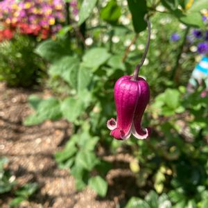 おはようございます☀ ベル型、壷型のクレマチスが咲き始めました🔔 今朝は茜の壷🏺