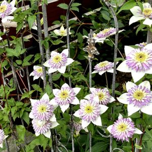 今日は予報通り暑いですね🥵 そんな中クレマチスが頑張って咲いています💓 ①年々花数が少なくなってきたビエネッタ 地植えにしたら調子が良くなって来ました☺️ ②以前ハーグレイハイブリッドをお迎えしたらこちらが咲きました😅 🏷️違いで販売されていたようです😌 なので名無しさん😅 赤系のところにグリーンが少し入ってて、とにかくよく咲きます☺️ ③ベノサバイオラシア💜 沢山咲いて来ました✨ ④茜の壺🏺 うどん粉で🍃が真っ白ですが、可愛く咲いているのでなかなか✂️出来ません😅 🌹に感染するのでカット✂️しないとですね😌 ⑤素敵な流星🌠 何度も投稿すみません💦