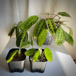 マランタ・レウコネウラ・エリトロネウラ🪴 剪定してからたくさん新葉が出るのですが模様が薄くてはっきりしません… 濃い模様が好きなんだけどなー どうしたら濃い色の葉になるのだろう⁇ pic2.2ヶ月前に挿し木したマランタの子供たち。やっと2枚目の新葉を展開🌱成長遅い… 小さい葉はさらに模様薄め💦