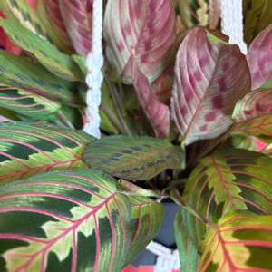 マランタ・レウコネリラ・エリトロネウラ🪴 生育旺盛で意外と場所をとる植物NO.1😂 葉っぱの美しさを活かせる置き方に悩んでます🤔 横に広がっていくので置いてもハンギングでも場所とる…どうしたものか… 剪定した方が良いんですかね💦 樹形を整えるのも難易度高めです。 プレイヤープランツで夜は葉が立ち上がる動きをするので、さらに場所とります😂 見た目オシャレなやつなのにそのポテンシャルを引き出してあげられない💦 素敵な飾り方を模索中です🪴