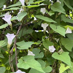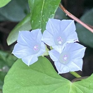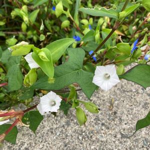 日没が早くなりましたね。秋風を感じながら 心地よく走っていると イキイキと咲いてるアサガオのお仲間たちをたくさん見かけます。 ヒルガオ科サツマイモ属 撮影 2025 9月末〜10/8 1つ目 マメアサガオ 豆朝顔 北アメリカ原産の帰化種 1.5cmくらいの小さな白いお花を上から見ると5角形。 葉っぱはハート。 撮影 工事資材置き場 2つ目 アメリカアサガオ 亜米利加朝顔 熱帯アメリカ原産の帰化種 お花の大きさは 3〜4cmと小さく、水色。 萼の先がクルンと外カールし、萼の基部には毛がびっしり 撮影 空き地 3つ目 マルバアメリカアサガオ 丸葉亜米利加朝顔 アメリカアサガオの変種で葉っぱがハート。お花の色、サイズ、萼の様子はアメリカアサガオと同じ。 撮影 駐車場のフェンス 4つ目 マルバアサガオ 丸葉朝顔 熱帯アメリカ原産の帰化種 この写真のような濃い紫色のお花を中心に 様々な色味が多品種あり、栽培されている。 葉っぱはハートで、お花の大きさは、アメリカアサガオより一回り大きく 5〜8cmくらい 撮影 ご近所さんのプランター