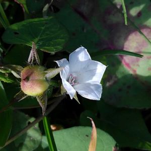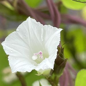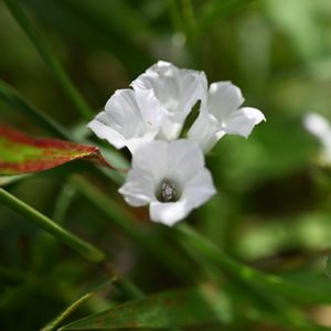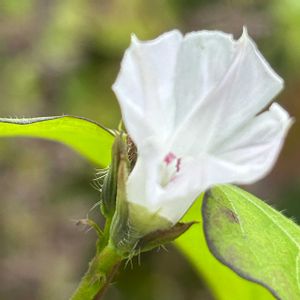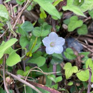 近所の田んぼへ花活に行きました🚶♀️💕🎶 農道の両脇には、可愛らしいお花が花盛りでした🌿💕🎶 マメアサガオ ヒルガオ科 サツマイモ属 別名 ヒラミホシアサガオ、ヒメアサガオ 日本では帰化植物のひとつ。 茎は蔓となってよく分岐し、他の物に巻き付いて長さ数メートルになる。 葉は長い葉柄を持ち互生し、先の尖った長卵形から心臓形で、先がだんだん細まるものが多い。 葉縁は全縁であるが、まれに3裂するものもある、形は変わりやすい。 花期は夏から秋にかけて。 葉腋に1–2本の花柄を出し、直径1.5cmほどの淡紅色から白色の漏斗形の花を1–2個、まれに数個つける。 花柄は無毛でイボ状の突起が密生し、稜がある。 花冠は上から見ると五角形から星形。 なんとも芸術的なお花でした✨🤍🎶 撮影 9月29日