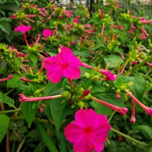 今日のGSの花オシロイバナ 花の色の種類はたくさんある夕方4時ごろになると辺りを甘い香りで包みます。とても鮮やかな色合いの花ですが恐ろしき秘密があります❗️オシロイバナには トリゴネリンという毒が草全体特に根や種に含んでいます。 誤って口にすると嘔吐、腹痛、下痢になります。道端に咲いている事から小さなお子様が口にしたり散歩中の🐶が口にしてしまう事も😱 オシロイバナは南アメリカ原産の花で日本に渡来したのが江戸時代の初めごろと言われています。3枚目の写真に黒い種が写っていますこの種でこの花が育てられます❗️ そしてこの種をわると白いおしろいのような粉が出るのでオシロイバナです🤗