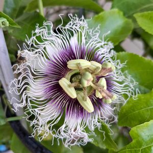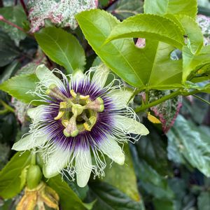 『パッションフルーツ🥭』 数年前から 我が家にあるパッションフルーツ🥭 今年は一輪 夏前に花が咲きましたが… 夏のあまりの暑さで ようやく、涼しくなってきたので 蕾も出てきて、咲きました✨ 秋になって4輪目 バッチリ写真🤳 撮れました🤍💜💛🍃