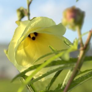 花オクラ😊🙌 通常のオクラと似ていますが、 ずいぶんと花が大きくて花を食べる植物です😆👌 酢を入れたお湯で茹でておひたしで食べるとツルッと…シャキッと…していてとってもさっぱりおいしいですよ😋💕 ちょっと最近マイブーム🤭 それにしても大きく美しい花✨