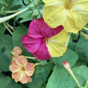 こんばんは! ①今年は黄色ばっかりだなーと思ってたら、赤もしっかり出てきました☺️オシロイバナです💛🩷💛 ②秋海棠(シュウカイドウ)の花がひょっこり!すっかり秋ですね。なのに日中はクソみたいな暑さです😥 ③ナスのビステッカ、収穫しました。このぐらいかなーと思ったのですが、400gが収穫の目安だそうです。写真のナスは186g。えぇ!?もっとデカくなるの!? 田楽にして食べましたが、トロトロですごい美味しかったです👍🍆