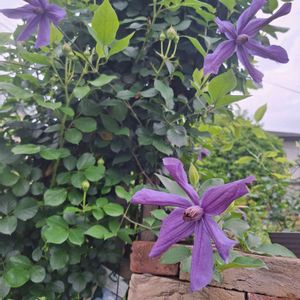 クレマチス シザイア・プティッサが咲きました♥️ 薔薇のクリスティアーナはまだ蕾です😊
