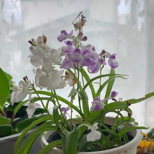 道の駅で 久しぶりにお迎え...♪*゚ ウチョウラン(羽蝶蘭) どこから見ても可愛らしい💕 どこがどうなってるの って、見るのも楽しい🎶 茎と葉っぱも素敵✨ 3枚目… お迎え3年目の白の羽蝶蘭 純真無垢な感じ🤍️🫧