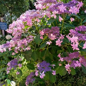 こんばんは😊 水やりのホースが外れてビシャビシャにずぶ濡れになっても、まだまだ夕方24℃は風邪ひく気がする鎌倉です💦💦 急いでお風呂入りました🛀最高気温27℃ ①⑤梅花甘茶 ⑤は6/9(日)六国見山で初めて見て感動した🥹 ①山紫陽花繋がりの友人に頂いたのが小さいのにたくさん蕾があって今日開花✨✨アリガトウ💕 何年も先輩のアジサイ展の展示で蕾の状態を見ていたから(当たり前だけど開花する事に驚いた)蕾と思わず完成形だと思い込んでいた🤣バカスギル ②レモンキスがやっと色付いてきたよ〜カワイイ ③ラグーンは昔買った時濃紺だったからお礼肥は青の肥料💙 🏷️アジサイ ラグーンの一枚目がそうです ④マスカレードは、植える時に枝をポッキリしたのでお花は一つだけ😢お礼肥は♥️