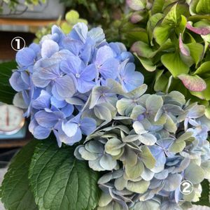 🍃💠紫陽花 『夕霧』 お花屋さんでアンティークカラーの紫陽花に出会いました😍 元の花色もブルー系で私好み🩵 名前を検索しても情報が少なくて、そうだ、こんな時はグリーンスナップ🍀📱👆🏻 そこには紫陽花大好きなオアシス☆ さんが「街ではめったに見られない希少品種」だとご紹介されていて、それならば‼️と後押しをもらってお迎えしました👍🏻 さて、来年はどんなカラーを見せてくれるかな〜 ①②③は花色の変化順です🩵💚🤎
