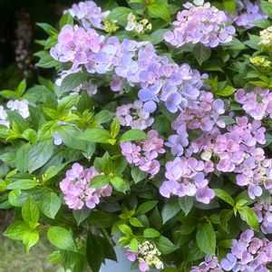 🍃💠紫陽花 ラグランジア クリスタルヴェール 花友さんの投稿を見て、透明感のある花弁、花付きの良さ、年々ボリュームアップされていることに驚きました💓 店頭に残っていたので、これもご縁かな〜っと私もお迎えしました🩵🤍 8月頃まで肥料をあげると立派な株に成長するそうですね🌿