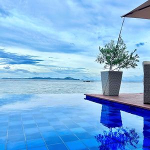 𓇼 ⋆.˚ 赤穂御崎⋆.˚ 𓇼 瀬戸内海の穏やかな海と風を感じながら神社やお店を散策しました🐾 ①海と水盤が一体化した『青の世界』インフィニティカフェ💙🩵 平和の象徴オリーブの木を入れてみました🌿🪞 ②伊和都比売神社⛩ 鳥居越しに海が見えました。 また、舟の上からも神社が見えて、大漁と安全を祈願されるそうです。 ③きらきら坂✨ 石畳には♡型の石や陶器タイルで装飾された階段⚛️✳️✴️ ④コラージュ写真から… 💙海辺の歩道にはツユクサが自生していました 🪴💠坂に面した観葉植物やステンドグラスのお店 💘恋人の聖地 石がピンクなんだそう😍