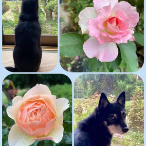 ワンワン祭り参加します🙋♀️ 外を眺めるのが大好きです。 でも、散歩は好きではありません🦥💦(怠け者) 夕方から小雨がパラパラ降ってきました☔️ ヤッター🙌だって‼️笑 秋バラがポツポツ咲き始めました😊💕 2枚目の多肉さん ひょろひょろの死にそうなやつを庭に放置していたら、 こんな感じに😂