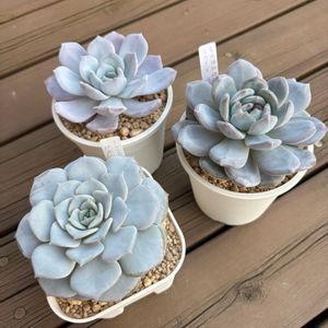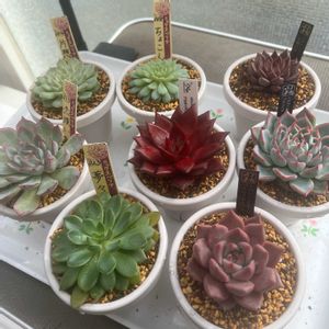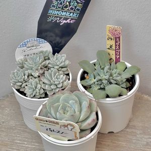 お久しぶりです😊 先日多肉ちゃんのイベントでの戦利品です💖 おらいさん苗の ちょこん、恋煩い、片想い、夢々 がうちの子になりました❣️ No.72まであるみたいで、うちに今、37個🥺 なかなか手に入れるのは大変だぁ😮💨 全部は無理でも、まだ欲しい子は頑張って手に入れるぞー🙌 ガーデンメッセさんの見本の寄せ植え🤩 素敵だから、真似っこしよう思ってます😂
