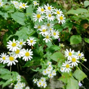 山沿いに咲く 古風な野菊です ヤマシロギクでしょうか? イナカギクやシロヨメナとも 言うようですが‥ よくわかりません😞 野趣ある野菊さんに しておきましょう🥰💕