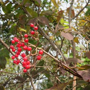 虚空蔵山山頂の花 ①ガマズミの実 ②〜④サザンカ ⑤ノギク 名前は分かりません 昨日、山友さんと登った虚空蔵山 久しぶりに登り、山頂でのんびり ヤマガラが飛んできましたが、近づいてはきませんでした。