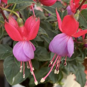 今日の空はずっと朝から曇り☁️雨は無さそうです フクシアは何回か育てたことがありますが、今年はプーニー レッド&ブルーにしてみました