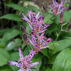 お早う御座います〜☁ 雨が降らない内にパチリ📸 ホトトギス、秋明菊、長寿ミニ薔薇、アメジストセージ、そしてベルちゃん🌈🐩ローズ🌹も次々と満開に〜 👏🥰🎶🎉🎊 癒されてね〜🙋💞