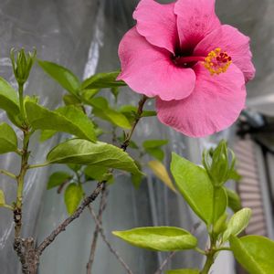 雨が降ってきました〜 ハイビスカス🌺が次々と咲いています…長寿、葉は小さくて少ないが、長期間咲いているのよ👏🥰🎶🎉 寒暖差が激しいので🌃はフレームを掛けています💪😅 育てる喜びを味わっているママさんだよ〜🙋💞🎶