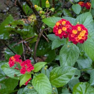お早う御座います〜☔ 雨に濡れし今日のお花ランタナです👍😃 頑張る老木庭木達です… ママさんもね、右に同じ(笑) ☔に濡れながらパチリ📸!! 癒されてね〜🙋💞