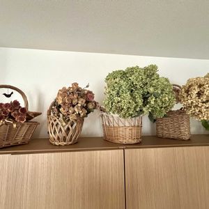 こんばんは🌙 1️⃣紫陽花アナベルがドライフラワーになりました💚 リビングの棚の上をドライフラワーコーナーにしています☘️ お気に入りのカゴ🧺に入れています☘️ 2️⃣出来たてのアナベルのドライフラワーです💚 3️⃣右側は昨年のアナベルのドライフラワーです。こんなに色が変わってしまうのですね🤎