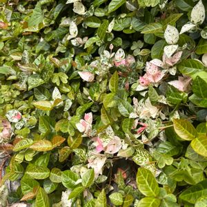 ピンク色と白色の斑入りが可愛い 🍀ハツユキカズラ キョウチクトウ科 テイカズラ属 テイカズラの園芸品種 耐暑性が強いそうです ショッピングセンターの植え込み花壇で 爽やかに!涼しげに!咲いていました