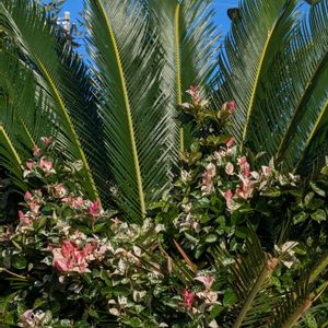 絵的に映えていたので📸✨ マクロザミアと初雪葛、そしてブルーバック(青空) 持ってますね〜私😉