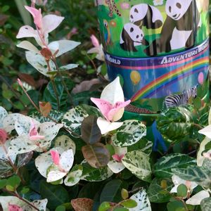 🍀ハツユキカズラ🍀 春先にカットしたので今回は錦にならないかと思っていたのですが・・・ 可愛く色づきました。🤗🎶🎵💕 今日中国に旅立つ浜家のパンダ🐼たち・・ 淋しいなぁ〜😅💦💦💦💦 7年前に買ったクッキー缶で 🏷パンダの日 🏷2のつく日は斑入りの日 🏷斑入り見つけ隊♪ に参加させて下さいね。