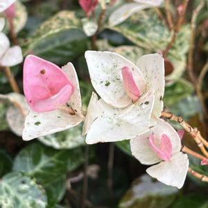 初雪カズラ 新芽は白からピンクのグラデーション。 綺麗です。 繁すぎたから少しカット。