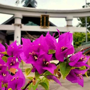 おはようございます💓 オアフ島2日目🌴 鮮やかなピンクのブーゲンビリアの後ろは 『ハワイ出雲大社』※。.:*:・'°☆ 御朱印もいただきました。 ダウンタウンにて