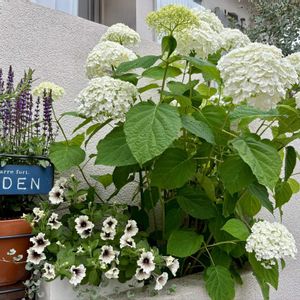 *アナベル *ペチュニア ビバ カプチーノ *サルビア ネモローサ カラドンナ もう梅雨が来るけれど、 なかなかお手入れが進まず… 雨が上がったので、今のうちに パシャリ📷