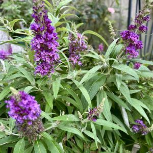 ①ブッドレア バタフライキャンディ リトルパープル 3年目になる株です。 それらしい大きさで咲きました このままにしていると側枝が出過ぎるからか、だんだん花が小ぶりになり咲かなくなります。 そこで昨秋に枝を思いっきりすいて冬越しさせました。 うまく出来たようです😊 ②ブッドレア バタフライキャンディ リラスイートハート (名前長すぎる問題🌀) 前のリトルパープルよりもさらに大きなお花です♪ ③クガイソウ・キューピッド 隙間から生えて大きく育ちました。 可愛いけど、邪魔で避けてたら、その横にあった①のブッドレアの花が下から顔を出しました。 ④[手前]咲き始めのブッドレア リトルパープル [向こう側]花終わりのクガイソウ お互い花が似ているので開花に気づかないところでした💦 (鉢を投げ込んで置いたままにしてあったので)クガイソウの後にブッドレアが見頃になります。 ⑤サルビア ネモローサ カラドンナ こぼれ種でとにかく増えるネモローサ。春一番に咲いた花は既に切り戻しています。これは新たに生えてきたものか? アゲハチョウが遊びにきています💕