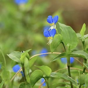 ツユクサ(露草) 別名 ボウシバナ、アオバナ、ツキクサ 花は朝露を帯びて咲き、半日でしぼむ。 花の汁を衣につけたことからツキクサ(着草)とも呼ばれる。小さい頃は色水🩵で遊んだ。 道端、草地など日本全土で見られる。 2023.9.9撮影