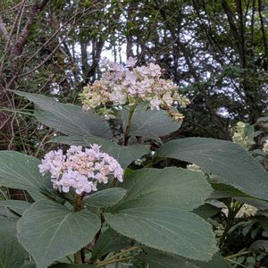 先日の斜面パトで… 1️⃣ 夕方でも暑い日差しでした 暗紫の野村(濃紫)モミジは これから赤くなるのが楽しみです! 慣用的には野村紅葉と呼ばれ書かれますが これはイロハモミジの園芸品種で 江戸時代から庭木として… "武蔵野“とも呼ばれたことがあるようです 2️⃣ 斜面中央の水木の夏蔦は随分落葉して 秋色に変わった残りの葉もあと僅か… 秋の気配もあるかしら? 3️⃣ サークルベンチの上に落ちていた 蔦の葉と水木の実を写してみました 4️⃣ "なんちゃって紫陽花ロード“の入り口は 糊空木と玉紫陽花で白一色です
