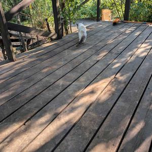 明日のペンキ塗りの準備を終える頃 涼しい風も吹いて来ました 先ずチロがサッパリしたデッキを 歩いてみました😸🐾🐾 ホッとして落日を眺めていると ススキがキラキラと輝いていました 来月も宜しくお願い致します🎶