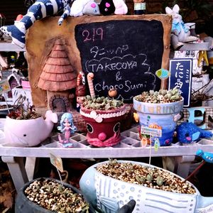 こんばんは(/^-^(^ ^*)/ 🏷トトの日 ピンクパンサーさん水族館ネーム付き鉢 サニコさんのタコ鉢 クジラ鉢、お魚さん鉢 お気に入りです💃 まつぴよさんのソクマンボウチャンも仲良く🎶 無事冬越ししてネ゙🐟 2枚目 先日いつもの多肉屋さんのイベントでお迎えした大きなカンテ、中々売ってないと言ってましたアクミナータ🌱 騙されたと思いつつお迎えしました😉 3枚目、4枚目……… イバライドのイベントでikuraさんのブースで見掛けました お値段にビックリ👀 お高過ぎて見てるだけ〰️〰️〰️👆👀(^^ゞ 目の保養させて頂きました(^^ゞ