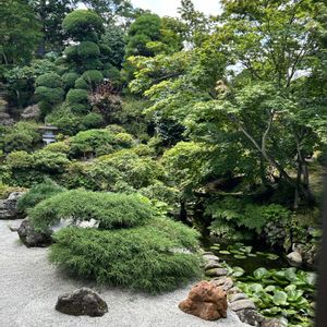【お寺:ナツツバキ】(今日のお花:エケベリア) 13日にアップしたナツツバキを再度 見に行くと咲いていました🤍 ここは本当に緑の美しいお寺さんです💚 結構大きなカタツムリを見つけました🐌 最後はカフェの前に置かれていた今日のお花の七福神さんが見事だったので📸
