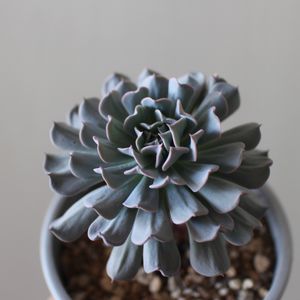 おはようございます🌿 エケベリア・レボリューションです 青みがかった葉がきれい 葉の形も独特で大好きな多肉の一つ☺️ ちょっと茎が伸びてきたのが気になる… 今日もよろしくお願いします☕