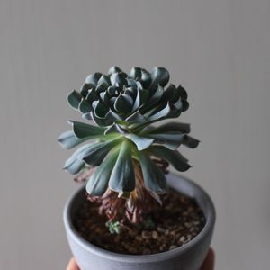 おはようございます🌿 エケベリア・レボリューションです 室内でLEDライトで元気 根元に子株(?)がでてきました😳 今日もよろしくお願いします☕