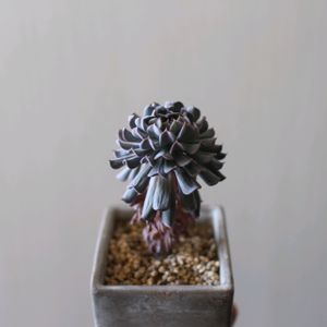 おはようございます🌿 エケベリア・レボリューションです 紫がかった葉がきれいです 花芽が出ているので開花が待ち遠しい✨ 今日もよろしくお願いします☕