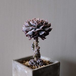 おはようございます🌿 エケベリア・レボリューションです 下葉がとれて茎のようになっていたところから新しく葉が出てきました😳 紫がかった色も相まって不思議な雰囲気 今日も謙虚に☕