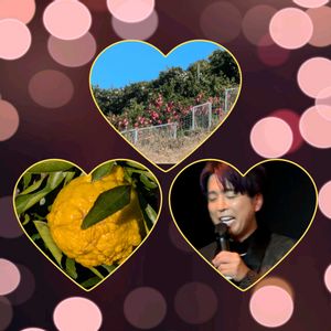こんにちは(*^^*) 風は冷たいものの、おひさまの温かいぬくもりを感じる今日この頃です☀ 昨日は愛媛県西予市で、面白い植物と出逢いました。 (↑上のハートの中) なんだと思いますか? 拡大して見て下さると判るかな?? 西予市を走っていると、時々遠くに、真っ白で綺麗な植物の園を見かけるのです。 『わあ❗真っ白なサザンカがとってもキレイ✨✨』 そう思って車から見ていると、 目の前に同じような光景が現れて、、、。 えっ⁉️・・・と。。。 真っ白なサザンカと思っていたお花は、 実は、、、紙袋だったのです。 愛媛県西予市といえば、知る人ぞ知る、 あらゆるミカン🍊の産地!! そう‼️ 紙袋のお花は、ミカンの袋掛けでした。 それが判って、さらに車を走らせて。 今度は、赤いサザンカの園と白い袋掛けの園が現れて、 『わぁ〜!お洒落〜〜!! このみかん園の持ち主は、紅白になるように赤いサザンカを植えてあるんだな〜。』 と、感心しきりな私。 ところがですね、なんと、、、 赤いサザンカも、赤い紙袋だったという💧 ┐(´д`)┌なんてこったーー!! というわけで、愛媛県西予市で、 面白い勉強をしましたとさ。 オチが着いた処で、本日は 見事に熟れているデコポン🍊と、 愛媛県宇和島市出身の歌手、空大樹くんとコラボさせての投稿です。