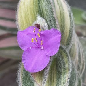 トラディスカンティア シラモンタナ錦 🟪特徴: 色: 緑とクリーム色とピンクのストライプ うぶ毛に覆われたとても可愛いトラディスカンティアです。 水を控えめにしたらうぶ毛が増えてモフモフ。 色も良いです。